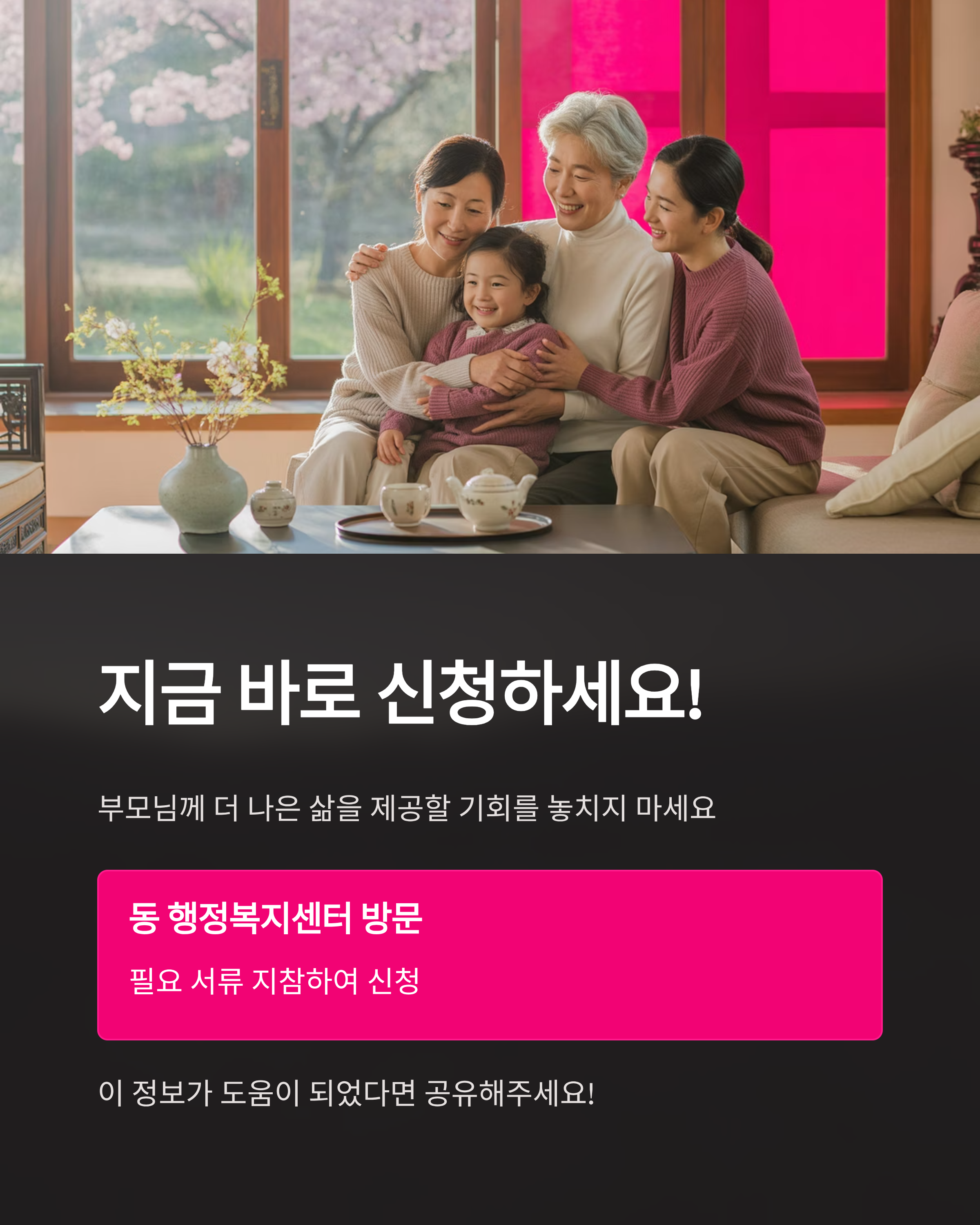 - 신청 마감일은 매년 다를 수 있으므로, 관할 동 행정복지센터에 문의하시기 바랍니다.
