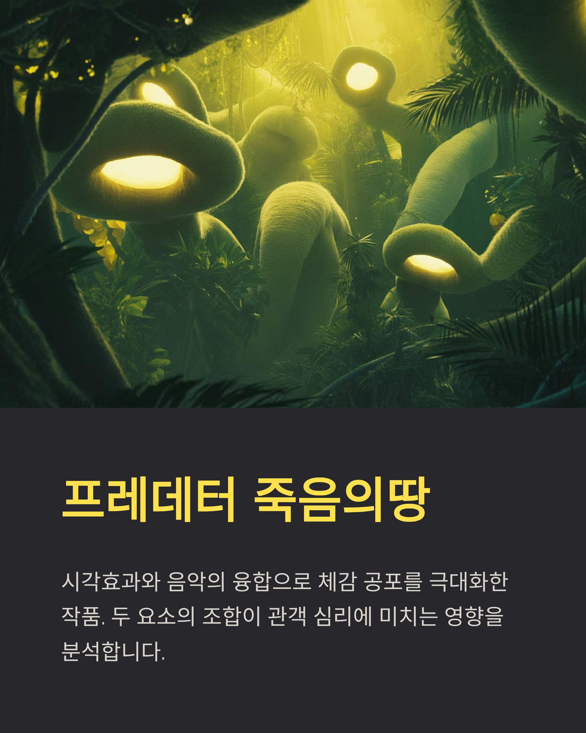 최근 공포영화는 시각효과와 음악의 융합으로 체감 공포를 극대화합니다. 프레데터 죽음의땅 역시 두 요소의 조합이 관객의 심리에 미치는 영향을 뚜렷하게 보여줍니다.